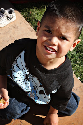 On Saturday, we threw him a pirate themed birthday party and invited al of his friends from school. Everyone showed up! We had a total of 30 kids including cousins. It was quite exhausting for me who had went to sleep late the night before... and ran around all morning. But he had tons of fun so it was worth it.